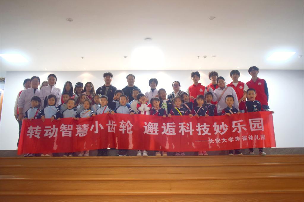 科创领航本科生党支部联合院大学生科技创新创业协会、机器人俱乐部与长安大学朱雀幼儿园,共同在216室创客基地开展“智慧小齿轮”主题研学活动。支部副书记孙超,科协主席王乐焱,李博祥、周颖莹、张璇、郑泽宇等志愿者,朱雀幼儿园副园长曹蛟、教师代表和大班小朋友共同参与了此次活动。