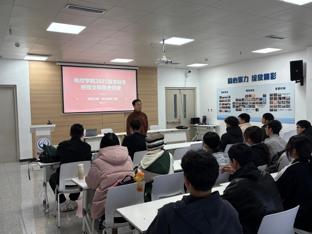 科创领航本科生党支部在渭水校区明德园智通大厦1号楼216会议室组织开展了2025级本科新生文明宿舍建设指导活动。支部副书记孙超、宣传委员吴耀东、学生党员王恒,以及2025级各班班长、生活委员、宿舍长共同参与。