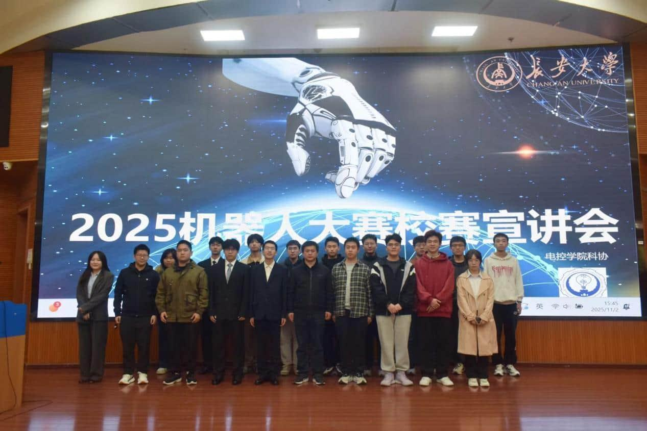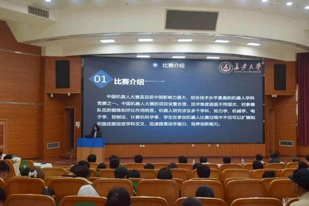 11月2日,长安大学第十一届机器人大赛宣讲会在图书馆西侧裙楼就业报告厅成功举办。本次宣讲会由电控科协主办,科创领航党支部协办。学院实验教学中心副主任朱进玉、电控科协科技创新部成员及众多对竞赛感兴趣的同学共同参与。