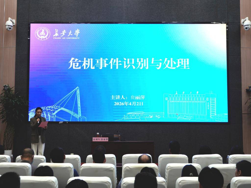在北校区师生服务大厅第二报告厅举办“危机事件识别与处理”专题讲座暨研究生导师培训会。长安大学心理中心教授贠丽萍应邀担任主讲,学院党委书记、院长闫茂德作专题培训。活动由学院党委副书记高婷婷主持。