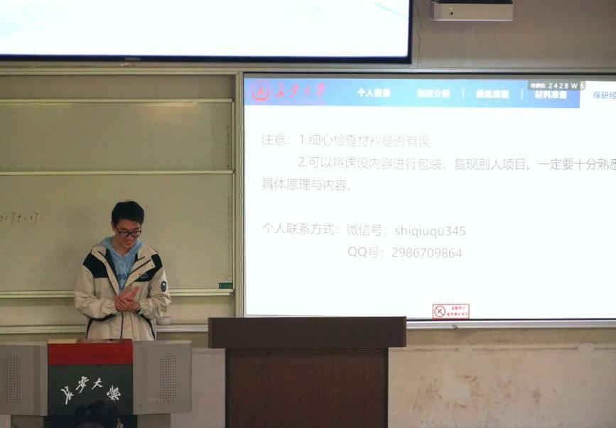 四位同学的分享内容翔实、针对性强,涵盖了从前期准备、复试考核到志愿填报的关键环节,现场气氛热烈,掌声不断。与会同学纷纷表示,通过学长学姐的“现身说法”,对保研路径有了更清晰的认知,也增强了信心与方向感。