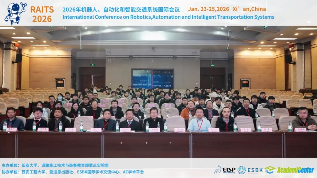 2026年1月23-25日,由长安大学、道路施工技术与装备教育部重点实验室主办,西安工程大学、AC学术中心协办的机器人、自动化与智能交通系统国际会议(RAITS 2026)在西安成功举办。会议聚焦机器人技术、自动化工程与智能交通系统的前沿发展,共设立主旨报告、特邀报告及多场专题分论坛,吸引了广泛专家学者参加。